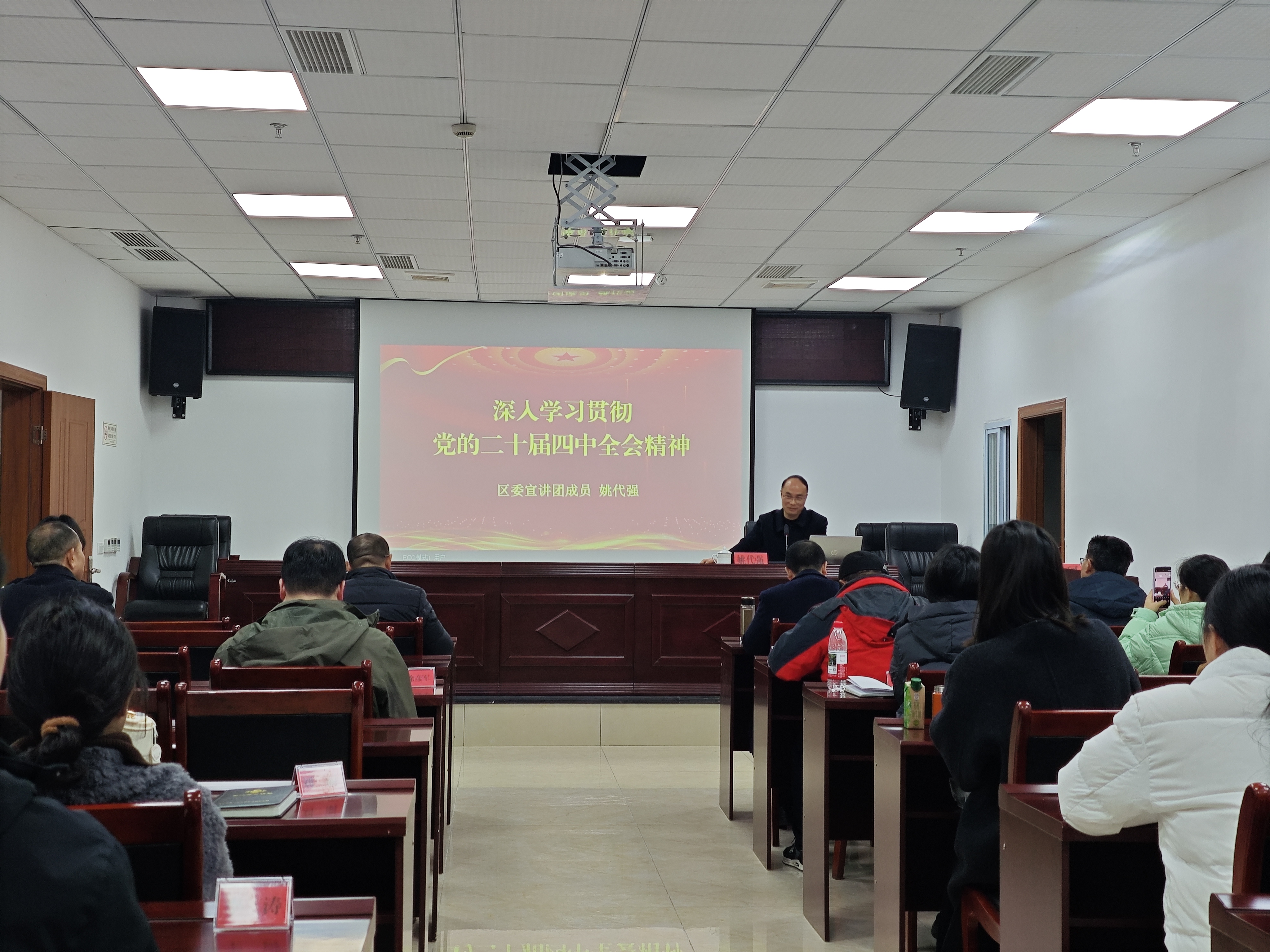 宣讲会上,姚代强围绕“党的二十届四中全会基本情况和重要意义”“准确把握‘十五五’时期在基本实现社会主义现代化进程中的重要地位”“深刻领会‘十五五’时期经济社会发展的指导方针、主要目标和战略任务”“坚持和加强党的全面领导,凝聚起推进中国式现代化的磅礴力量”“对标对表深谋实干,体系化推动四中全会精神在重庆一贯到底”“区委三届十次全会精神”等六方面,对全会精神进行了全面宣讲和深入阐释。他指出,党的二十届四中全会是在全面建设社会主义现代化国家、向第二个百年奋斗目标进军的关键时期召开的一次具有全局性、历史性意义的重要会议,全体党员干部要在思想上高度重视,更要在行动上精准对标,吃透精神实质,明确努力方向,确保全会部署要求在綦江供销系统落地生根、开花结果。