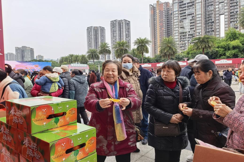 “师傅,这脐橙是奉节本地种的吗?汁水真足,酸甜味儿刚好!”品鉴区里,重庆市民李女士尝过一瓣后便主动追问。县社工作人员即刻上前介绍:“是的,这是三峡库区生态种植的脐橙,皮薄肉嫩,还带着诗城的文化底蕴呢!”