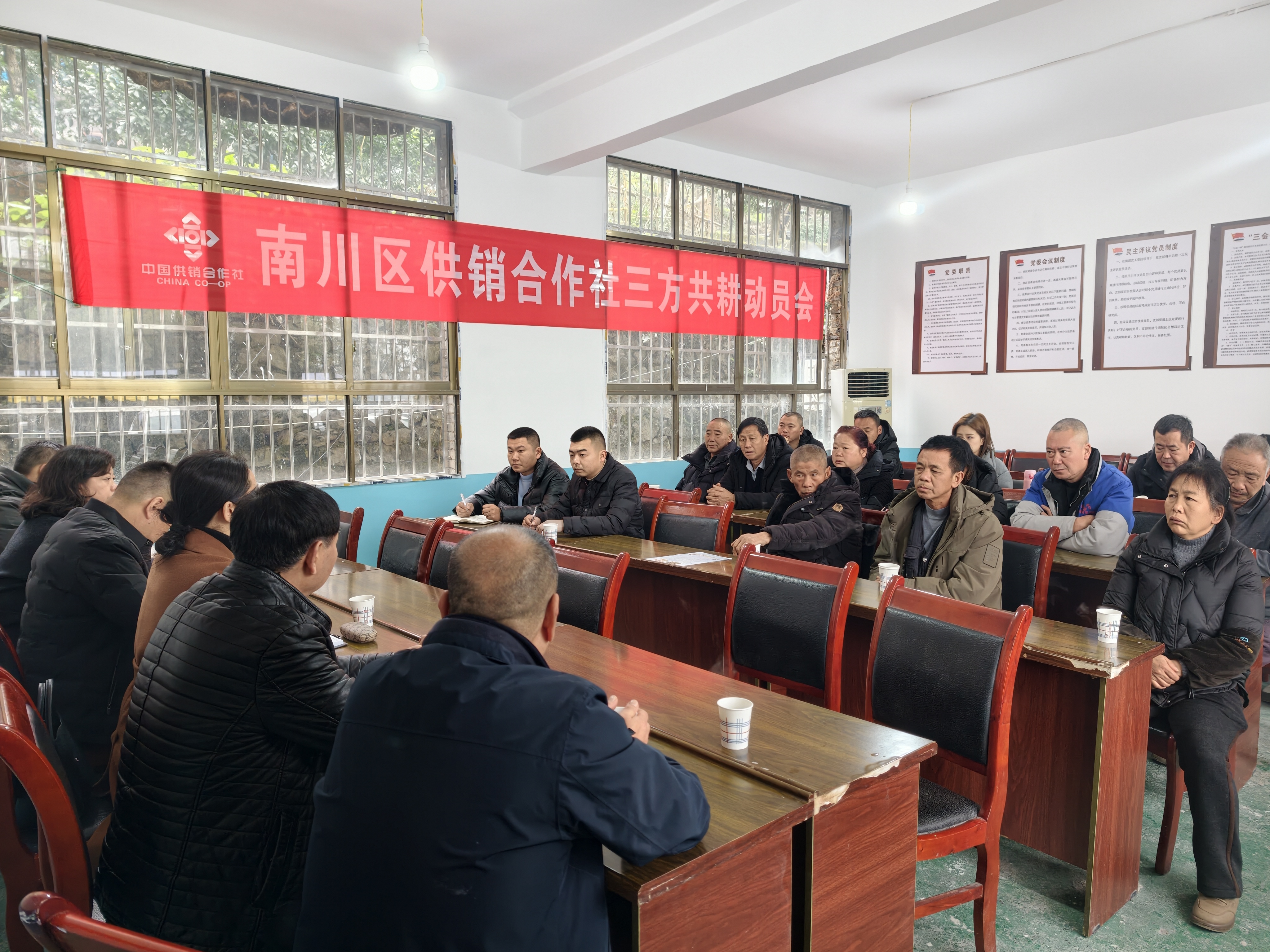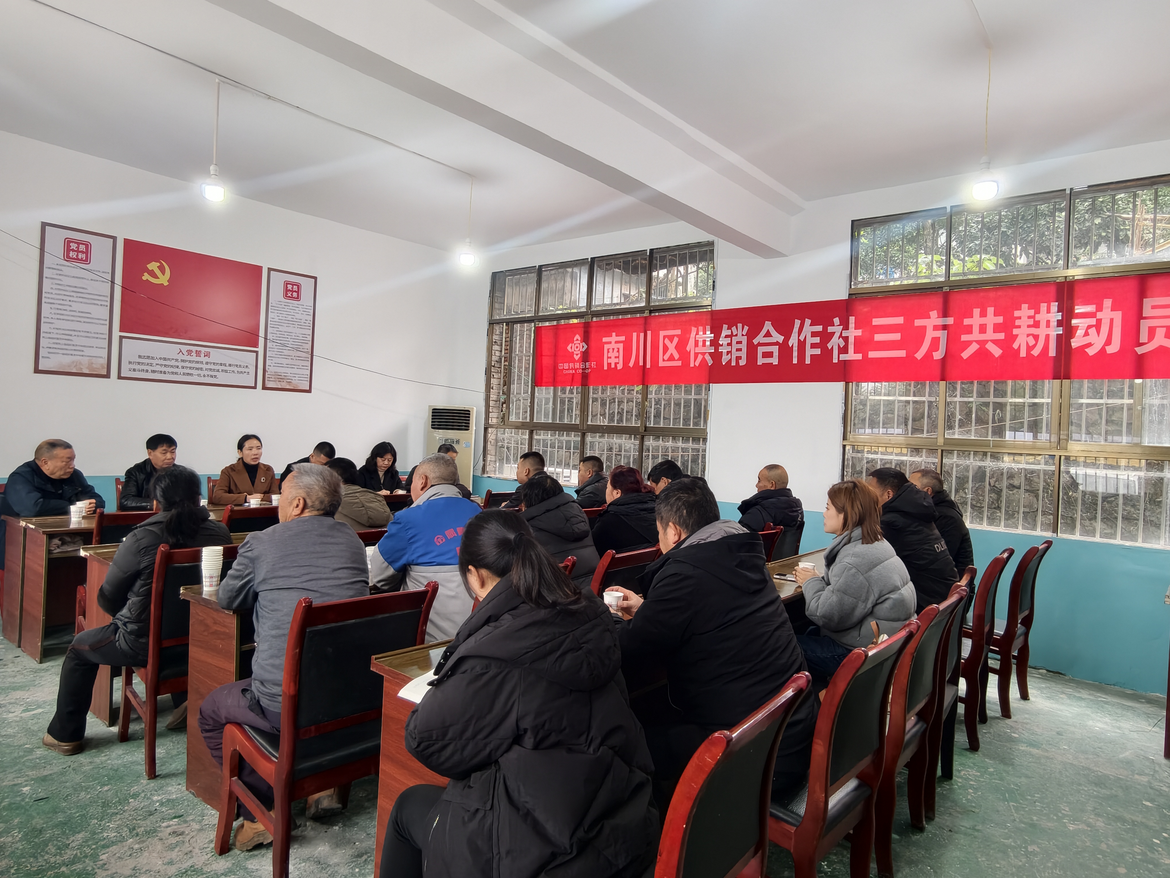 12月26日,南川区供销合作社党委书记、理事会主任黄敏率“三方共耕”宣讲团,深入南城街道清泉社区开展调研座谈。宣讲团与南城街道党工委委员侯定呈,以及清泉、万隆社区“两委”干部、社长、村民代表面对面交流,共商2026年“三方共耕”工作规划,推动这一乡村振兴“富民良方”落地见效。
