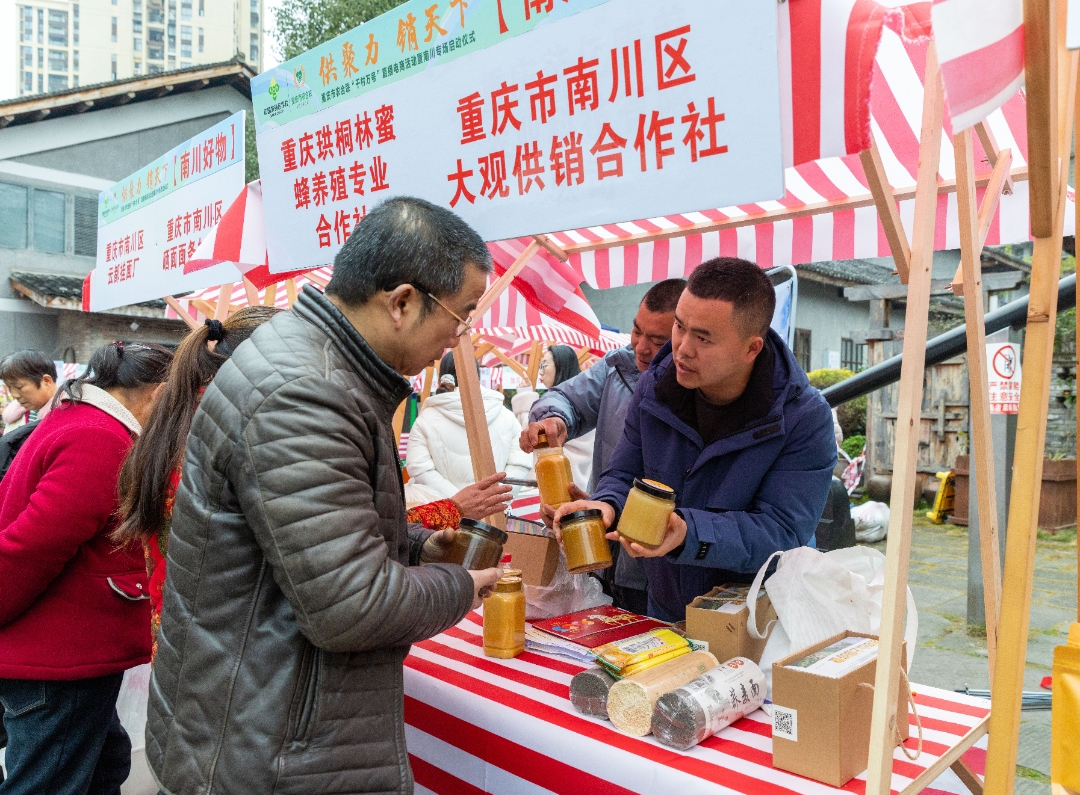 产销对接专区内,30个展位整齐排列,南川区农合联会员单位纷纷亮出“家底”,原生态大树茶、纯正土蜂蜜、精制方竹笋等特色农产品琳琅满目。一家涉农企业负责人向京东采购商详细介绍产品溯源与品质管控体系,双方当场交换联系方式,初步达成年度采购意向。