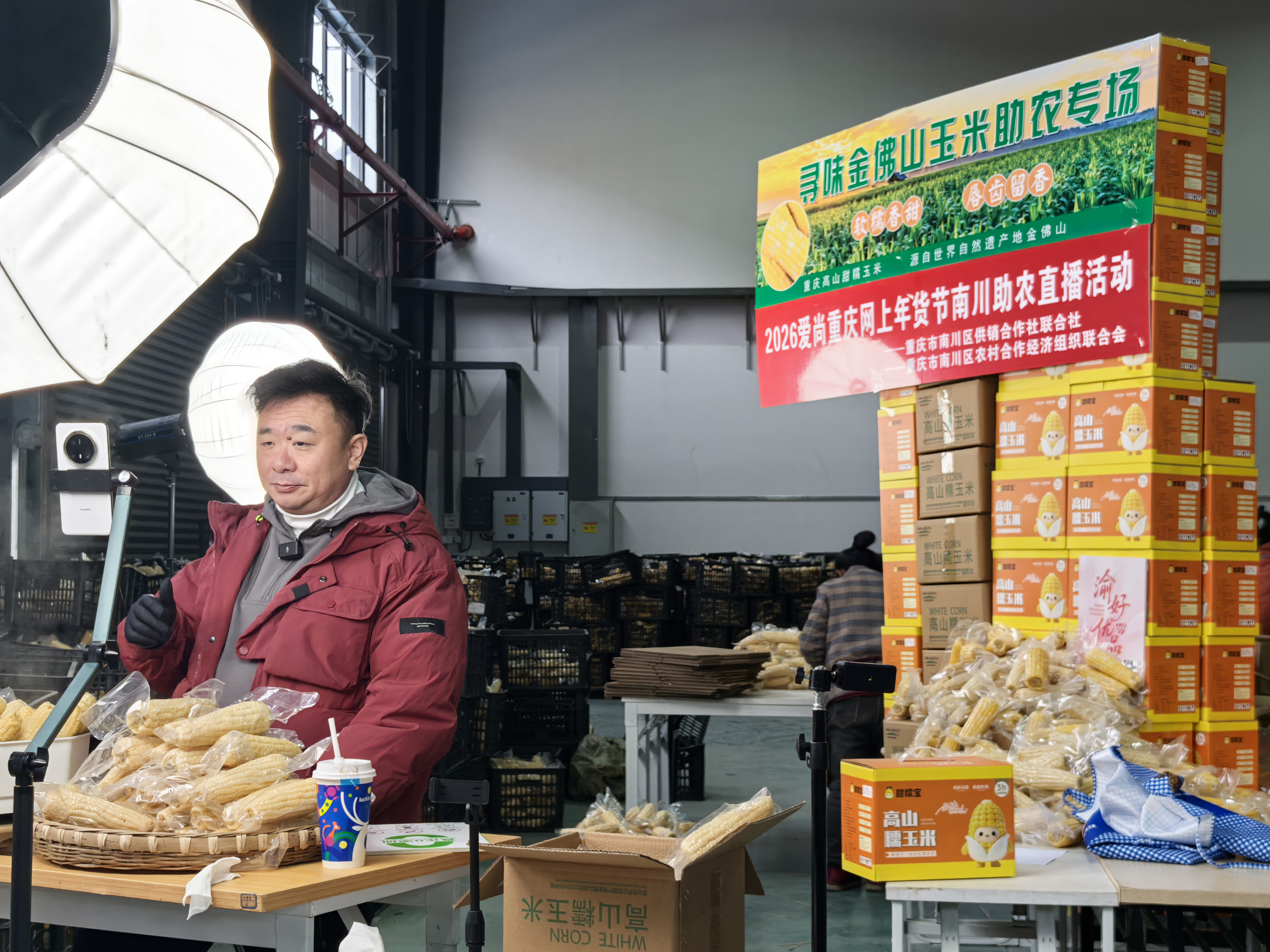 1月21日,重庆市南川区供销合作社联合南川区农合联会员单位重庆丰必达网络科技有限公司,举办“2026爱尚重庆网上年货节南川助农直播——寻味金佛山玉米助农专场”。依托抖音平台,邀请重庆本土明星周二毛助力,以沉浸式展示、接地气讲解凸显产品品质,最终斩获13560单订单、26。9万元销售额。