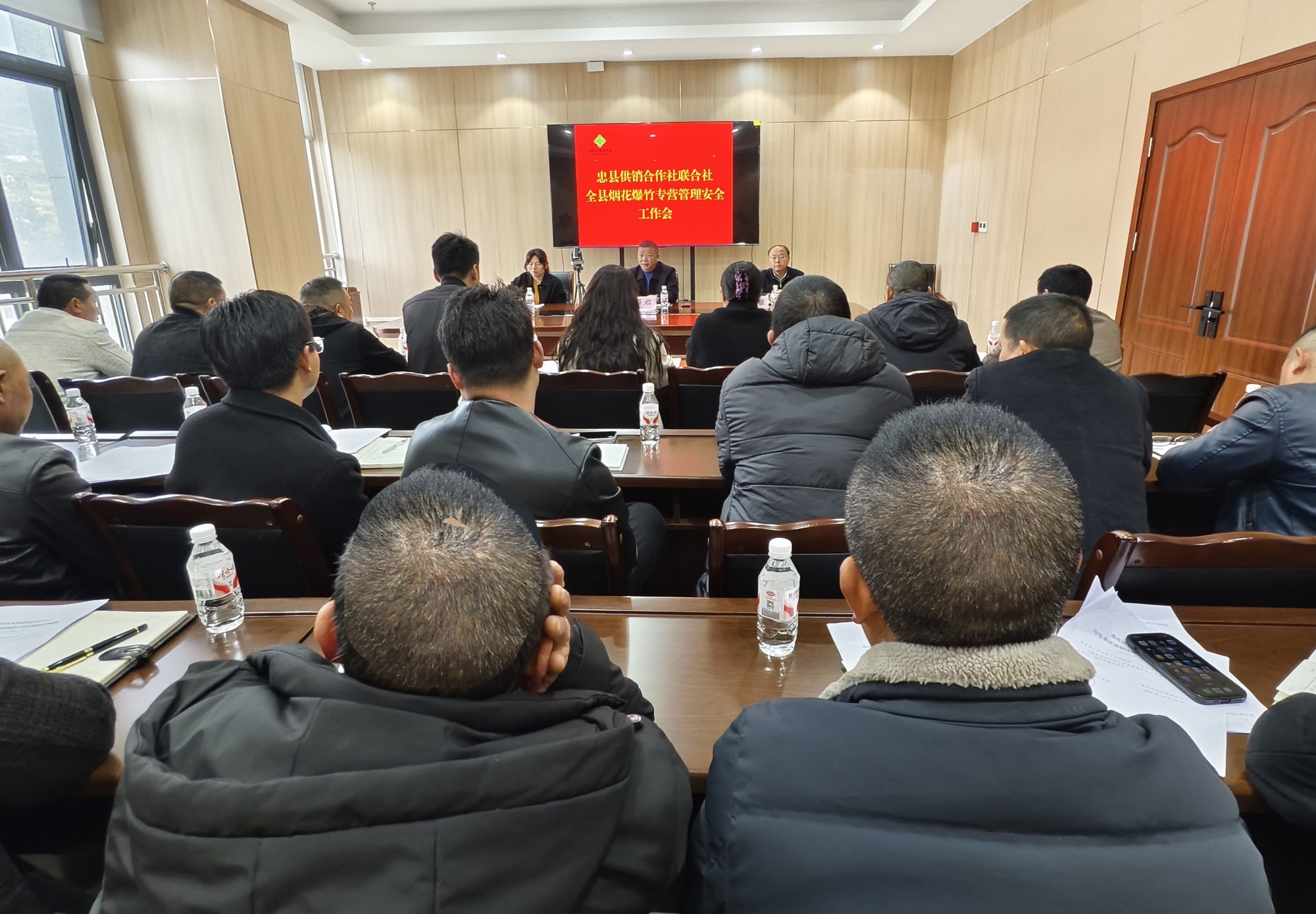 2026年3月11日,忠县供销合作社组织召开全县烟花爆竹专营安全管理工作会议,县供销合作社班子成员、企业管理科及经济发展科负责人、重庆市烟花爆竹集团忠县祥辉有限公司主要负责人及各片区烟花爆竹销售负责人共35人参加会议。