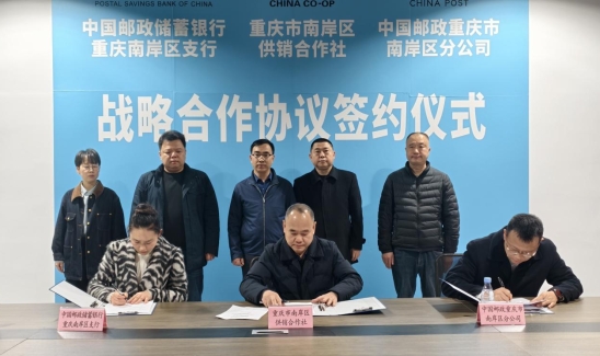 3月18日,重庆市南岸区供销合作社、中国邮政集团有限公司重庆市南岸区分公司和中国邮政储蓄银行股份有限公司重庆南岸区支行三方签署战略合作协议。