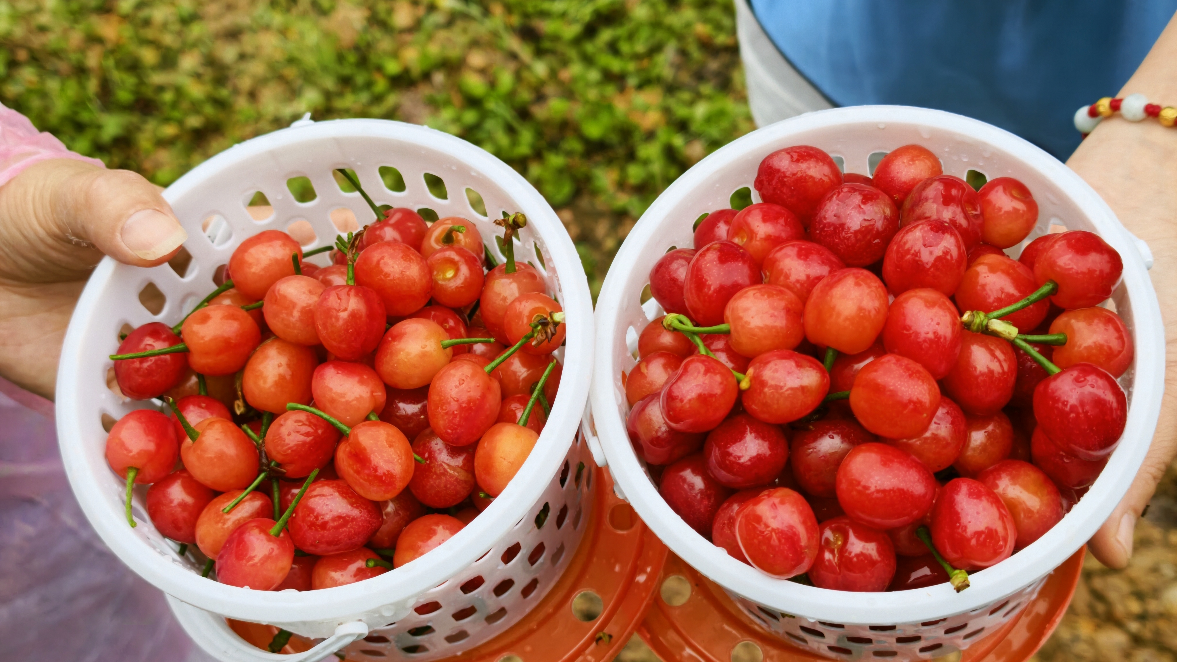 明月山海拔适宜、光照充足、昼夜温差大,土壤富含矿物质且远离污染,是樱桃生长的天然沃土。独特的高山气候让樱桃积累了充足的糖分,果肉饱满、色泽艳丽、口感清甜多汁,品质远超平原种植,堪称樱桃中的“尖子生”。