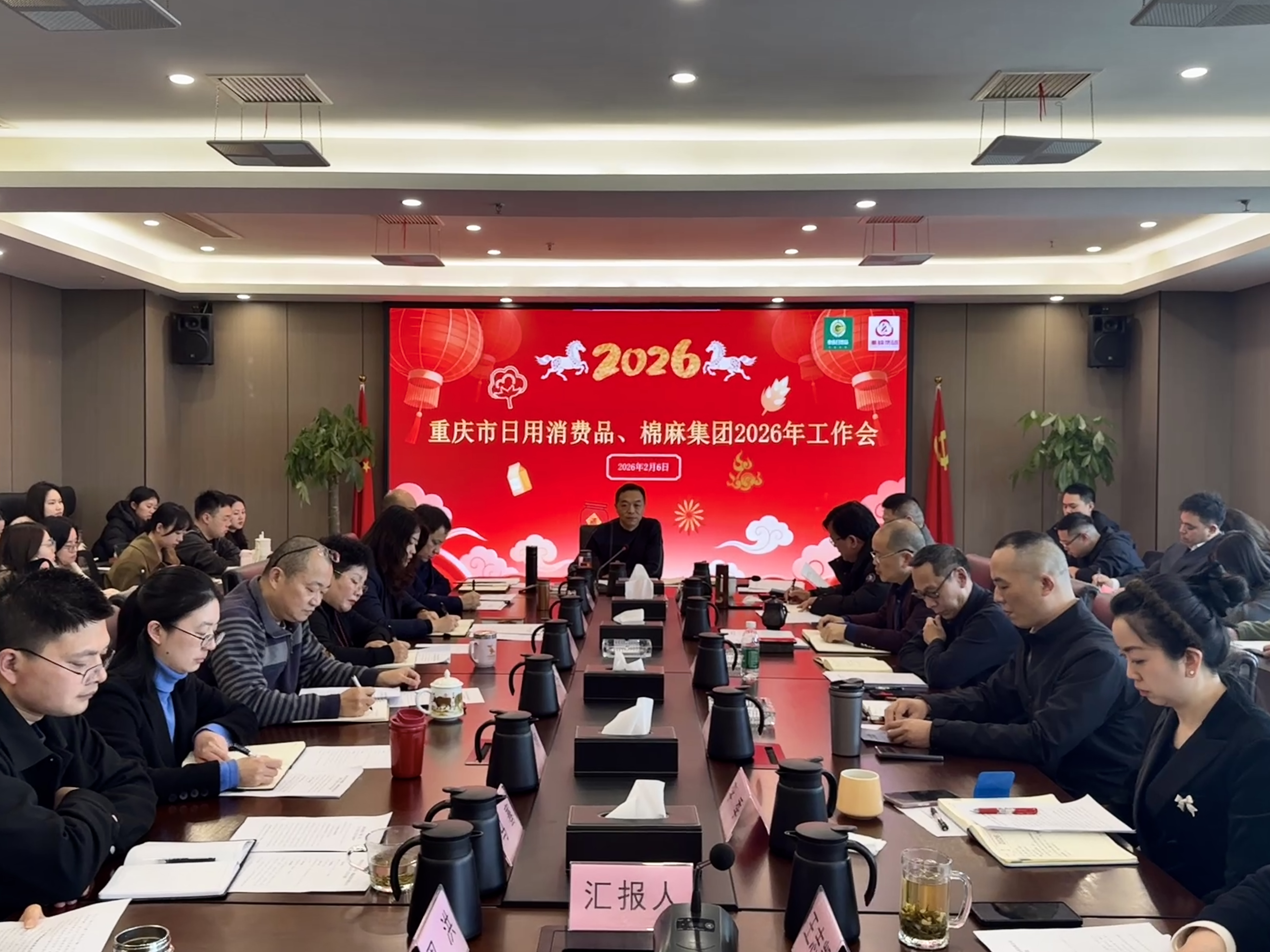 2026年2月6日,重庆市日用消费品、棉麻集团召开2026年工作会。会议全面总结集团2025年度工作成效,深入剖析当前发展问题,为下一阶段重点工作指明方向。集团党委书记、董事长刘兴林主持会议,集团在家领导班子、管理部门和直属子公司中层以上人员、职工代表等80余人参加会议。