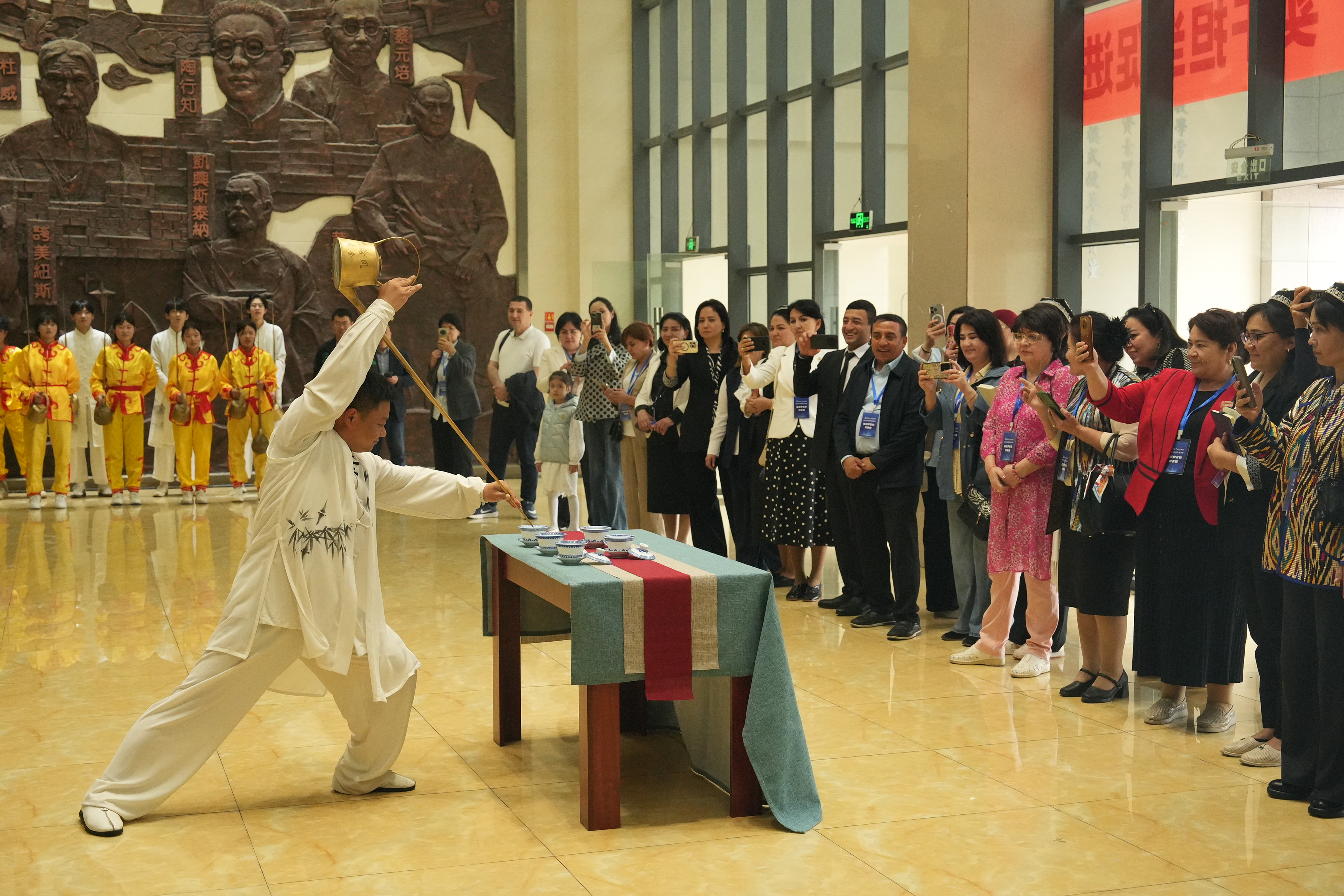 温杯、醒茶、高冲、低斟…… 学校茶叶专业学生带来端庄雅致的中式茶艺表演,在全国技术能手黄海艳老师及学生的引导下,代表团成员逐一体验中式泡茶流程,在氤氲茶香中感受 “以茶会友、以礼相待” 的东方礼仪文化。